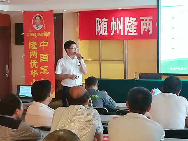 會(huì)議上,亞華種業(yè)黃凱經(jīng)理向隨州各鄉(xiāng)鎮(zhèn)經(jīng)銷商分享了隆兩優(yōu)華占優(yōu)勢(shì)特點(diǎn)和湖北各地表現(xiàn)情況。隨州新神農(nóng)種業(yè)公司總經(jīng)理萬天江先生總結(jié)發(fā)言隆兩優(yōu)華占是個(gè)安全、可靠大品種、大品牌,值得大家去努力推廣的好品種。