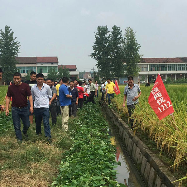 2017年9月14日,寧鄉(xiāng)縣雙鳧鋪雙鳧村迎來了一個特殊的日子,那就是隆王稻隆兩優(yōu)1212在這里召開了現(xiàn)場觀摩會。會議由寧鄉(xiāng)種子經(jīng)銷商歐軍宇歐總主持召開,有60余人參與此次的現(xiàn)場觀摩會。
