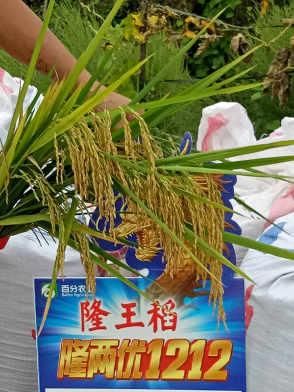 隆王稻——隆兩優(yōu)1212隨著徐徐秋風(fēng)搖曳著身姿,迎接著一年一度的秋收。9月13日上午農(nóng)戶賀祖發(fā)已備好收割機(jī),萬事俱備,只等著懷化市種子經(jīng)銷商王梅香及附近的種植大戶來見證“隆王稻”的收割現(xiàn)場(chǎng)。